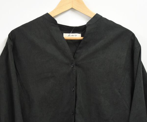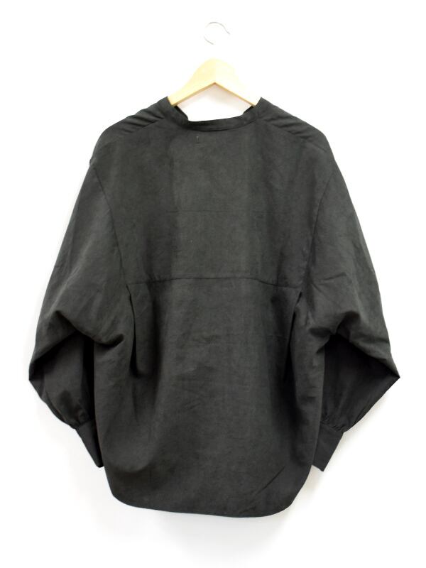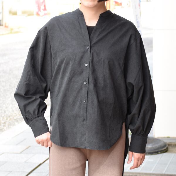 ボリューム袖ノーカラーブラウス(チャコール) 2806332