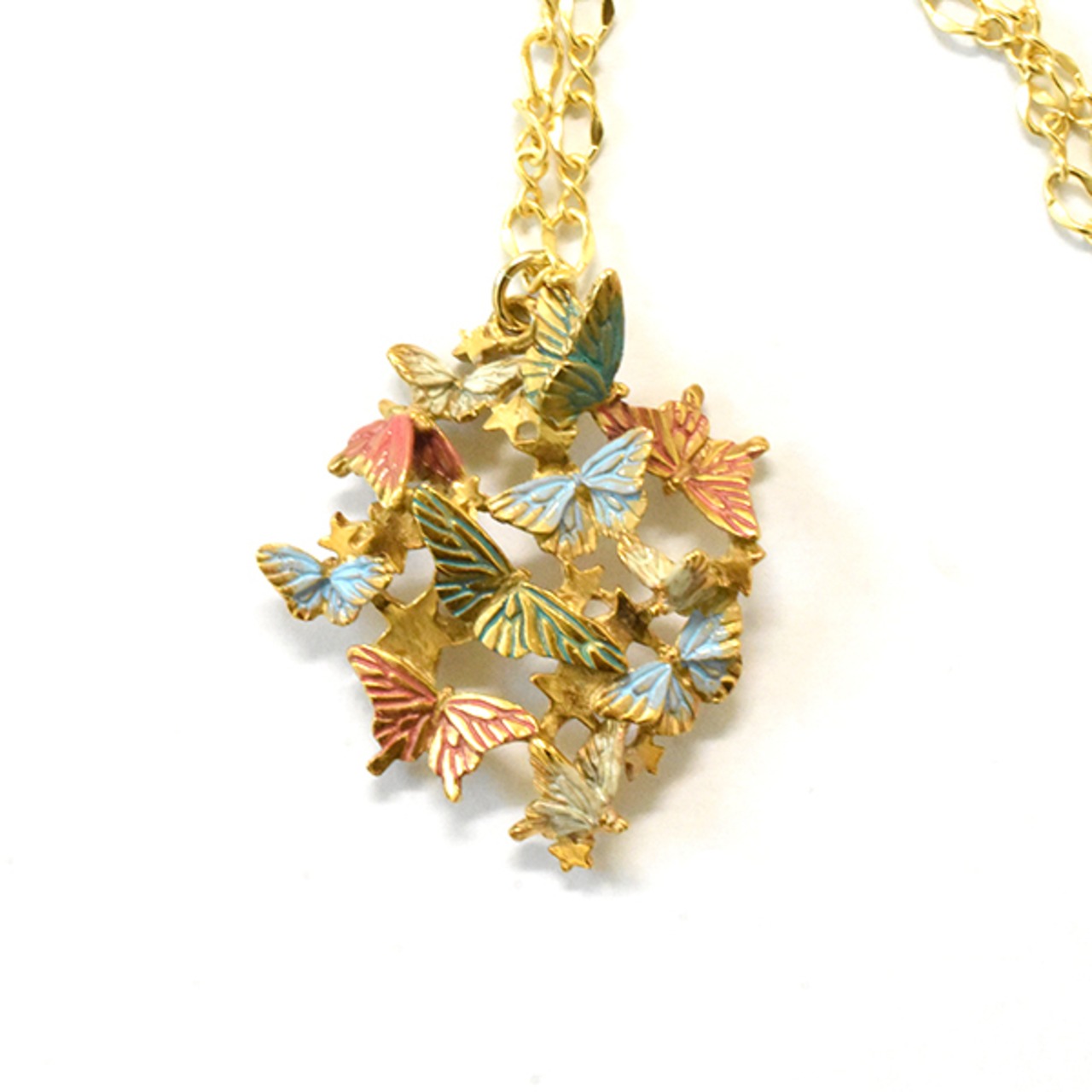 様々な種の蝶が飛び交う幻想的な光景をイメージしたネックレス。