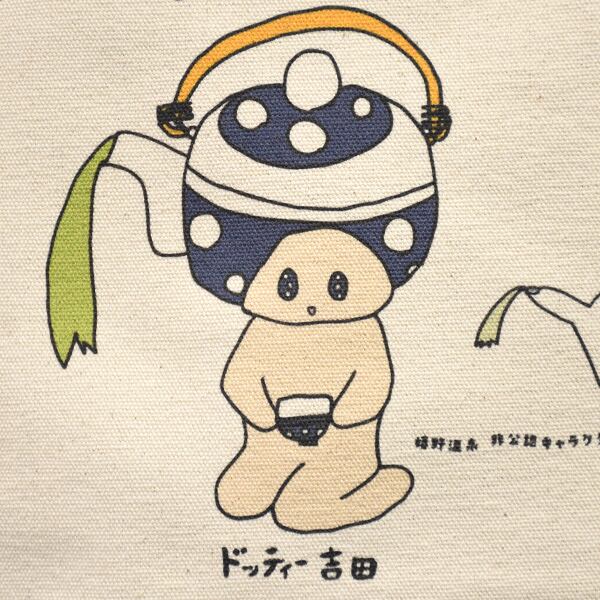 ドッティー吉田とまんまるちゃんがプリントされたトートバッグです。