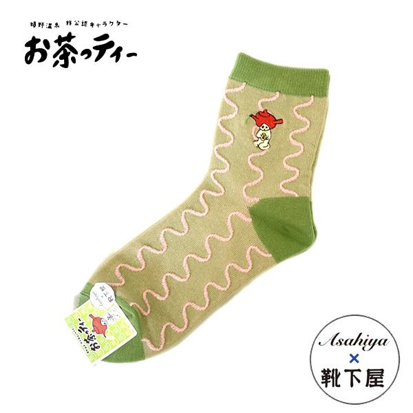 レディースお茶っティーウェイブ柄ソックス(グリーン)